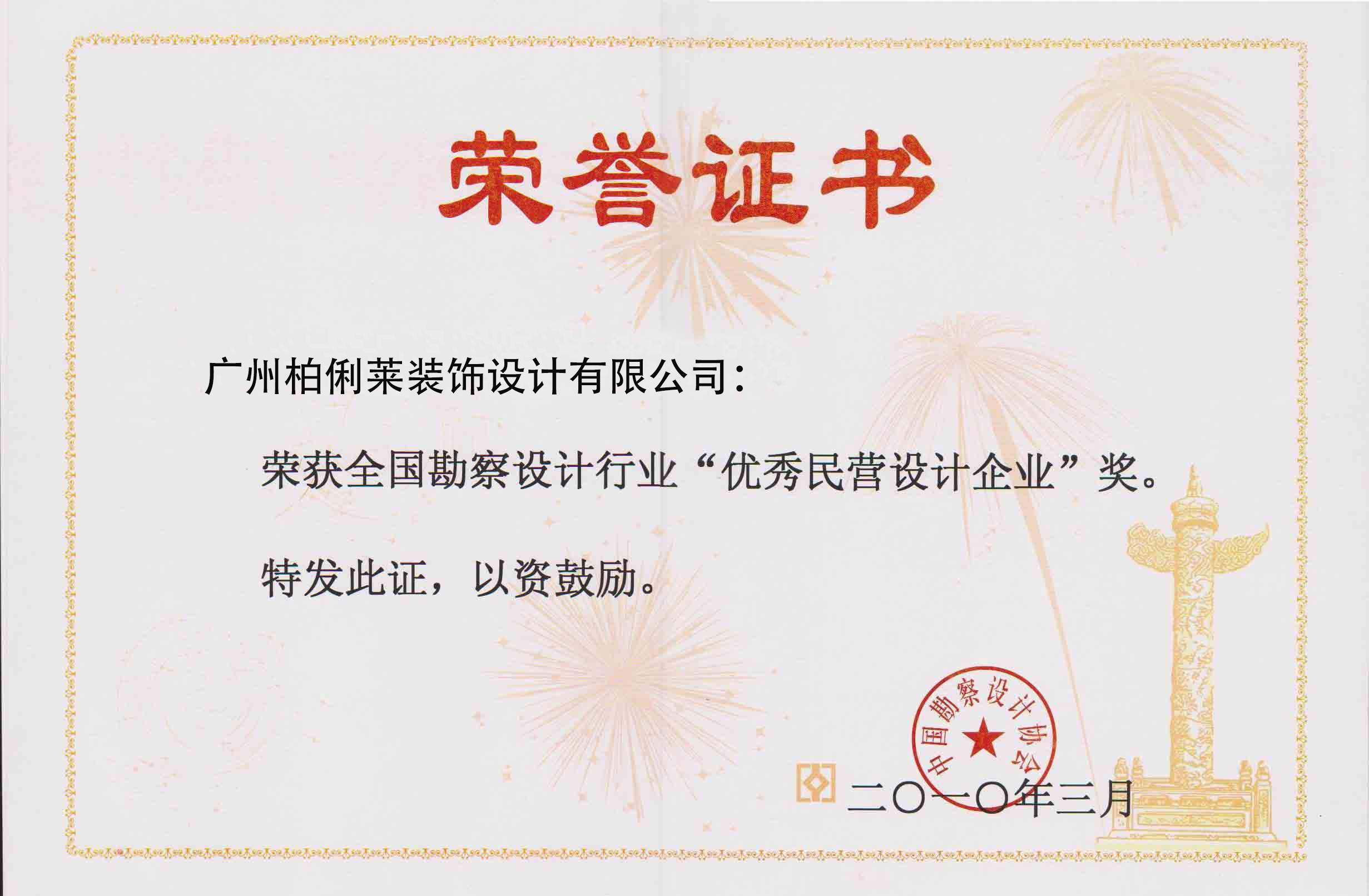 “柏俐萊”優(yōu)秀設(shè)計(jì)企業(yè)稱號(hào)